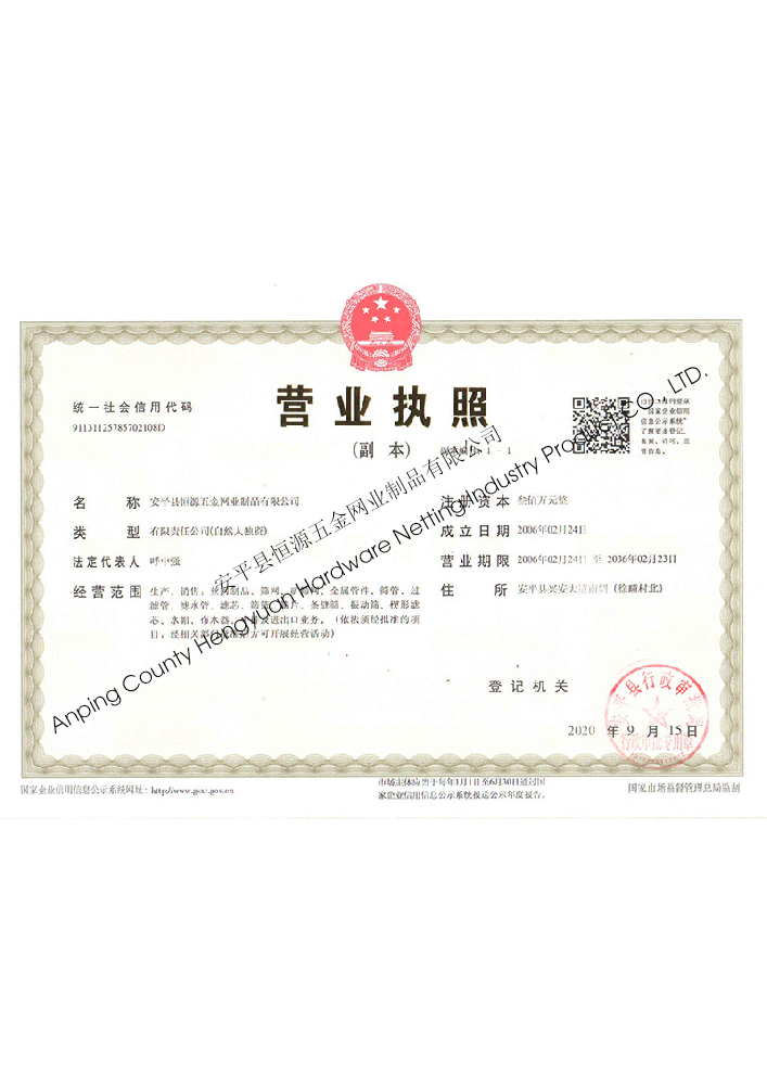 安平縣恒源五金網業制品有限公司,位于“絲網之鄉” 河北省安平縣,其前身為安平縣礦篩網廠,成立于2006年,注冊資金300萬元,是建廠時間較早、生產銷量較大的礦篩網骨干企業。